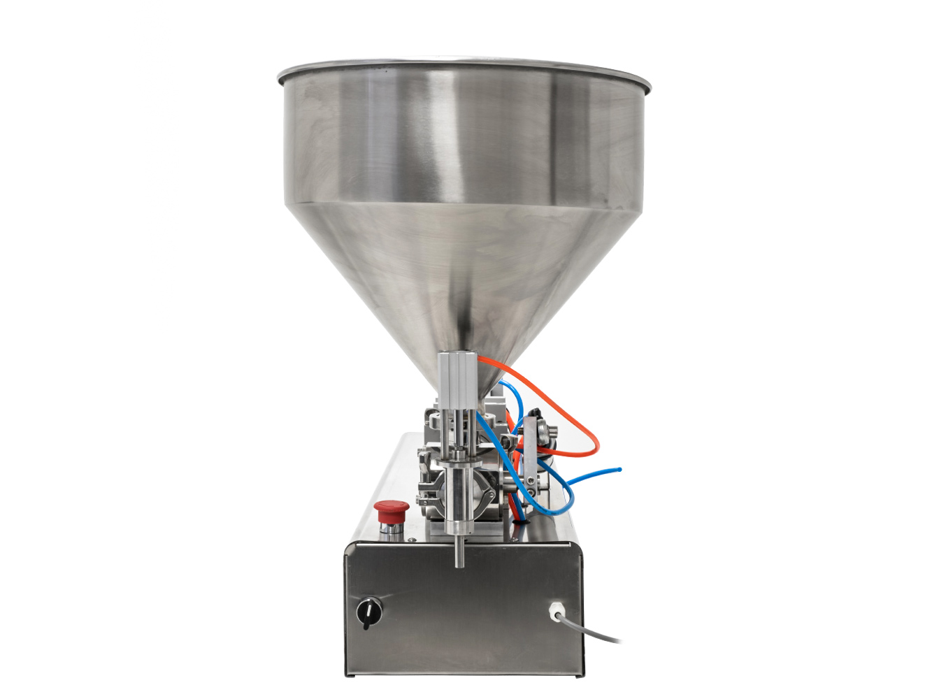 Pneumatická plnička je určena pro dávkování tekutých a polotekutých produktů, jako jsou oleje, barvy, sirupy, jogurty, kečup nebo hořčice. Není vhodná pro tuhé či velmi husté směsi s pevnými kousky, například paštiky či pomazánky.