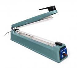 Horní držák obalů má šířku 320mm a lze na něj umístit jeden nebo více kotoučů s obalovým materiálem, čelisti vytvářejí svár o šířce 10mm, tepelný výkon čelistí lze regulovat otočným voličem na pravé straně přístroje, o přesnou regulaci tepelného výkonu se stará bimetalový termostat, svářečka má integrovaný řezací nůž, pro snadné održíznutí zabaleného materiálu.