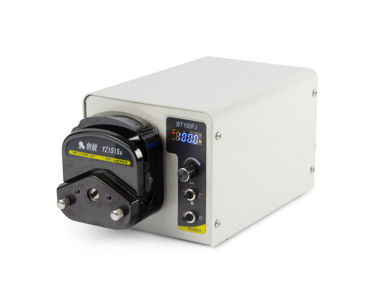Automatický peristaltický dávkovač / pumpa BT100FJ s hlavou YZ1515x a možností dávkování jednotlivých dávek (řada FJ) s průtokem od 0.007ml – 380ml/min v kovovém kvalitním provedení pro bezkontaktní sterilní dávkování a transport tekutin s vysokou přesností dávky větší než 99.5%.