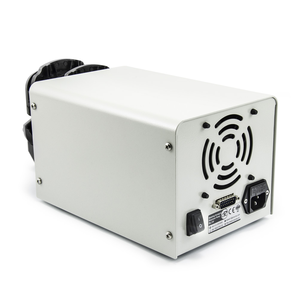 s průtokem od 0.007ml/min do 380ml/min x2 kompatibilní s hadičkami s tloušťkou stěny 1.6mm a vnitřními průměry 0.8mm, 1.6mm, 2.4mm, 3.1mm, 4.8mm, 6.4mm a 7.9mm