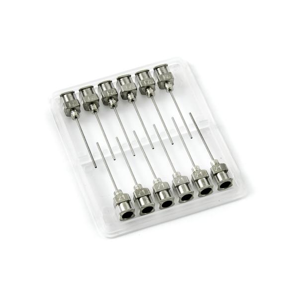 Tupé celokovové aplikační jehly s délkou kanyly 25,4 mm (1") pro přesné dávkování kapalin střední viskozity až k velmi viskózním. Ideální dávkovací hrot pro robotizované nanášení při tlaku do 6,8 baru. Tělo i náboj jehly je vyrobeno z nerezavějící oceli a v něm je osazena kapilára z ušlechtilé rafinované oceli. Při výrobě je kladen důraz na kvalitu povrchu a přesné dodržení vnitřních průměrů jehly a proto je povrch kapiláry elektrolyticky leštěn.