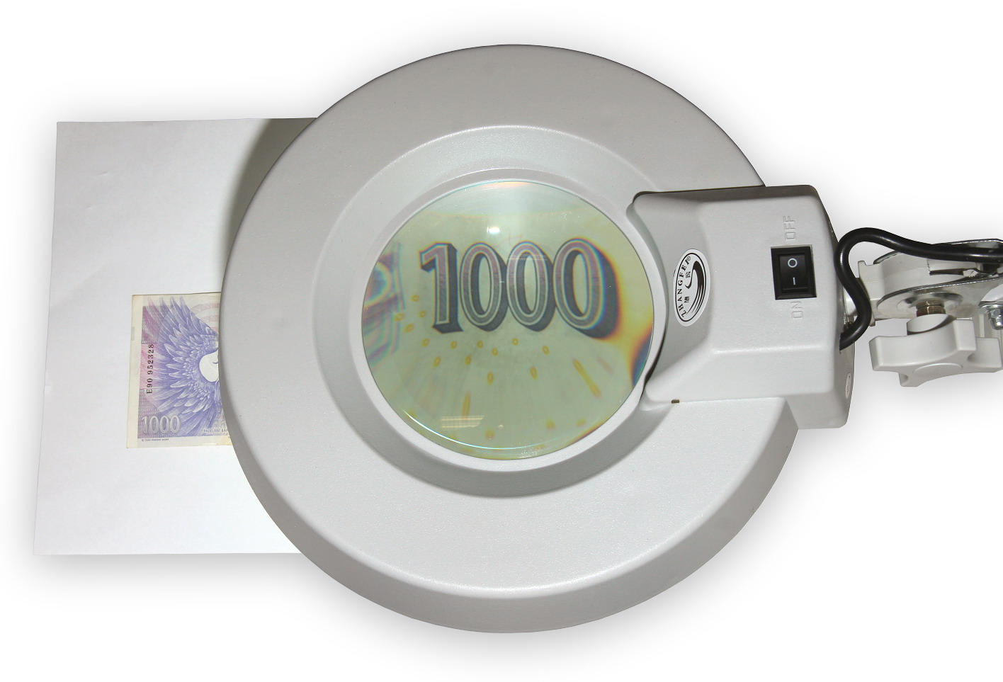 Velkoplošná kruhová pozorovací čočka je vyrobena ze skla a je k dispozici v několika provedeních, lišících se optickou mohutností (dioptriemi). Jednotlivé varianty čoček mají 3, 5, 8 a 10 dioptrií. Zvětšení lupy je pochopitelně fixní a musíte jej zvolit při objednávce. Průměr čočky je 125 mm.