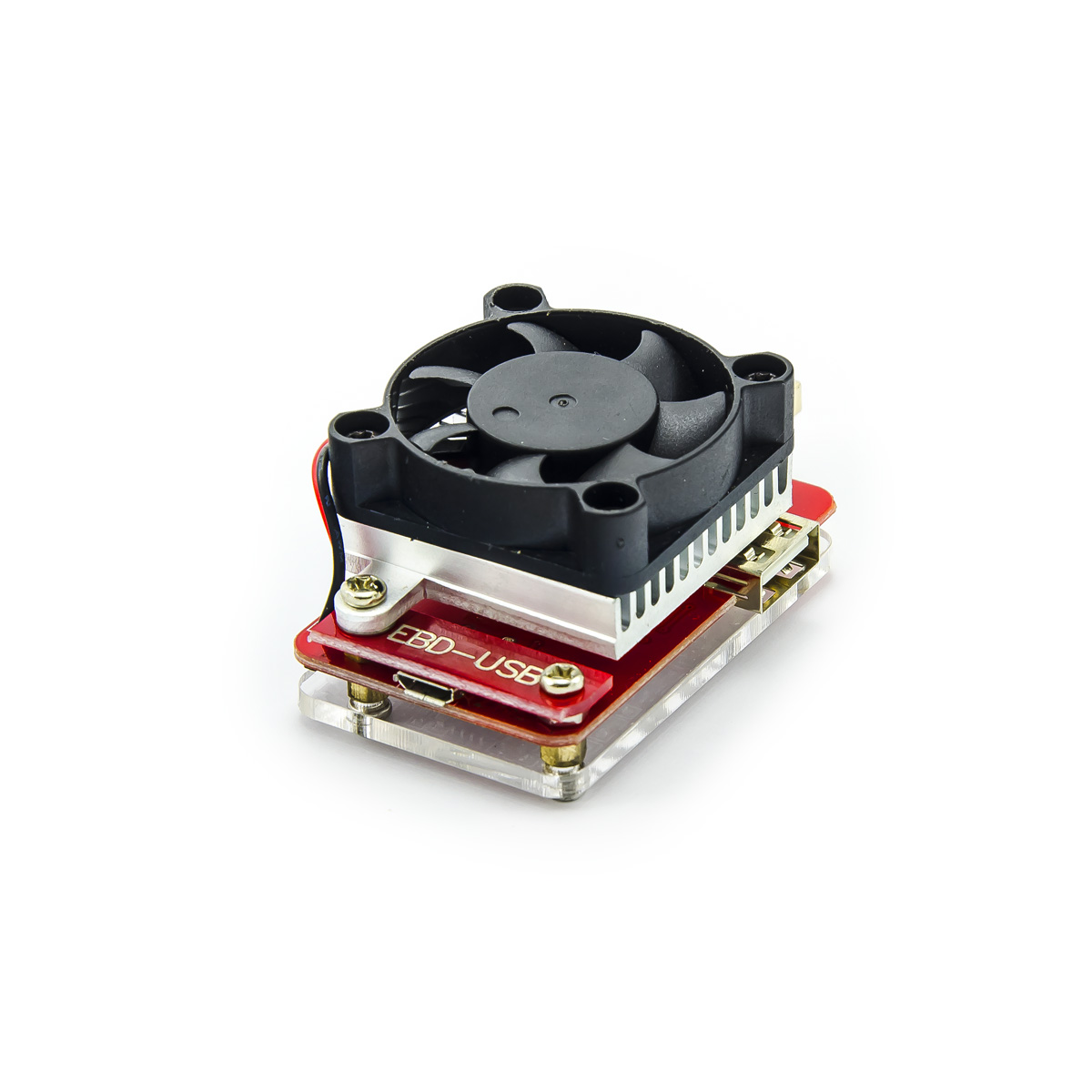 Zátěž disponuje aktivním 40mm chladičem, který automaticky spouští dle potřeby. Samotné PCB je malých rozměrů - 40x60x33mm. Spodní část je kryta průhledným plexisklem, které zabraňuje dotyku a případnému zkratu.