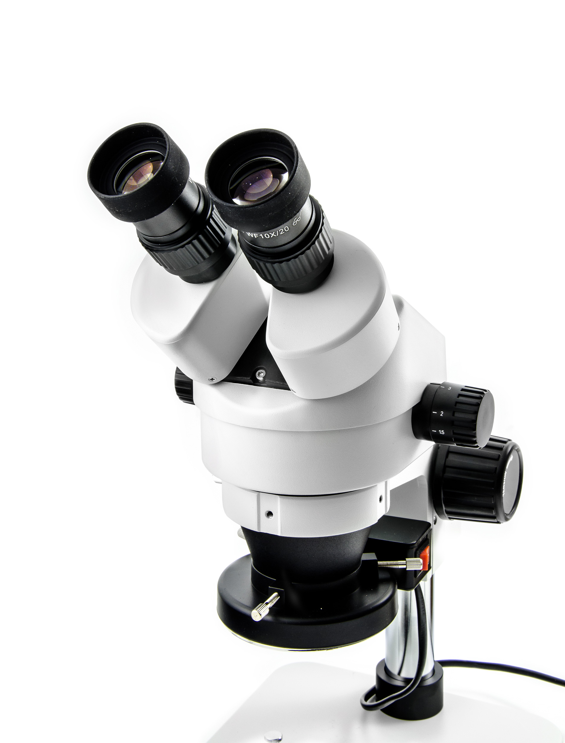 výškově nastavitelnou hlavou, pro pozorování větších předmětů. Výsledné zvětšení se skládá z okulárů WF10X s pevným zvětšením 10x a plynule nastavitelným objektivem - od 0.7x do 4.5x, tedy 7 - 45x. Díky rozsáhlé ploché základně mikroskopu se tento mikroskop hodí pro práci s elektronikou a to především k přímému pájení SMD součástek pod mikroskopem, dále k inspekci desek plošných spojů a jejích komponent (SMD, BGA součástky, vizuální kontrola cest, apod). Mikroskop je vybaven kroužkem pro upevnění osvětlení na objektiv, na které se připojuje kruhová zářivková lampa, která je rovněž součástí mikroskopu. Díky výškově nastavitelnému uchycení hlavy mikroskopu