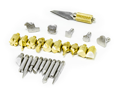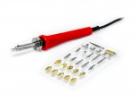 Vypalovačka do dřeva se dvěma pery o příkonu 60W s regulací teploty v rozmezí 200-600°C slouží k vypalování nápisů či motivů do všech druhů dřeva, korku či kůže. Samostatně stojící stanice s regulátorem teploty se dvěma vstupy pro vypalovací pera, která jsou ke stanici připojena pomocí šroubovacího konektoru s kabelem o délce 90cm. Společně se stanicí dostanete v balní 20ks různých vypalovacích hrotů a stojánek pro každé pero. Hroty lze snadno vyměnit, stačí povolit dva křížové šroubky, které drží hroty ve vypalovacím peru. Stojánek slouží k bezpečnému odložení pera, pokud jej zrovna nepoužíváte. Díky krátké vzdálenosti mezi místem úchopu a horkým hrotem se pero drží velmi podobně jako tužka a lze s ním velmi dobře psát a kreslit.